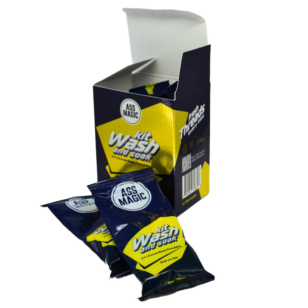 Each pack includes 6 single-use sachets of our powerful enzyme-based 3-in-1 detergent, designed to remove dirt, eliminate odours, and protect performance fabrics — no washing machine required.